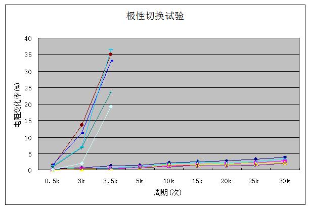 试验方法: 20℃~80℃,正向通电5分钟再反向通电5分钟为一周期。